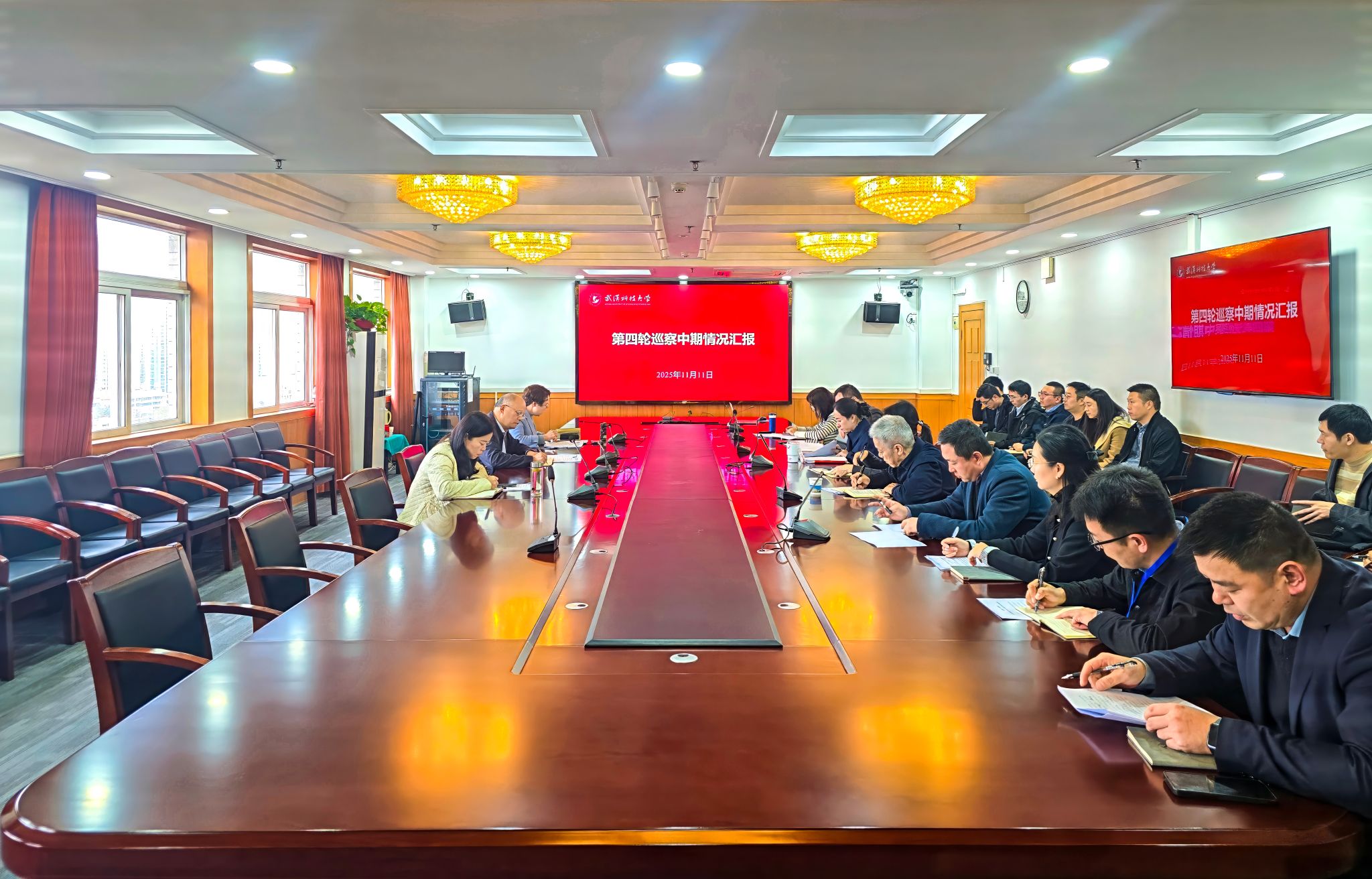 会上,倪红卫同巡察干部亲切交流,听取各组巡察中期情况汇报,详细了解工作推进中存在的困难和问题,对各组坚持政治监督定位、紧扣学校中心任务、沉到一线、走近师生开展工作取得的阶段性成效予以充分肯定,并就“现场巡察有序撤点、问题查找逐步聚焦”的关键期,提出指导性意见。